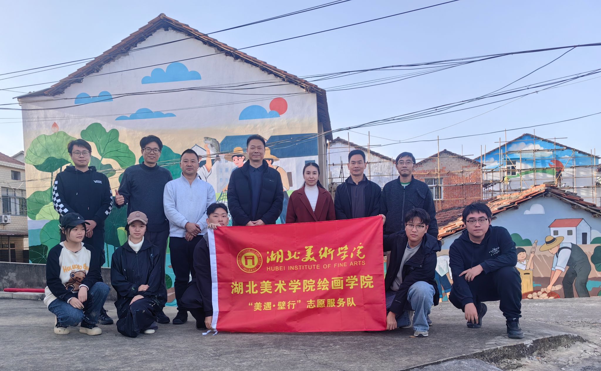 2025年11月,betway西汉姆联官方网站“美遇·壁行”志愿服务队走进武汉市江夏区金口街道,开展以“艺术赋能乡村文明建设”为主题的志愿服务活动。师生团队深入金水社区与艾岭村,累计绘制约750平方米主题墙绘,将专业创作融入乡村文明建设,提升文化服务和文化产品供给能力,推动优质文化资源直达基层、惠及群众。以艺术笔墨绘就文明乡风,提升乡村治理水平。校地双方积极探索基层社会治理体系和治理能力现代化建设示范区创建的江...