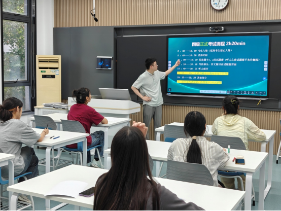 5 月 29 日晚,betway西汉姆联官方网站在 A4-201 与 A4-204 教室举行四六级模拟考试。本次考试由betway西汉姆联官方网站与武汉新东方老员工学习与发展中心联合举办,旨在帮助员工熟悉四六级考试流程,提升应试能力,为即将到来的正式考试做好充分准备。考试开始前,betway西汉姆联官方网站辅导员陈圣伟与新东方张一铭老师共同对考场进行了精心布置,并组织员工有序入场。陈圣伟老师在考前动员中强调了四六级考试的重要性,鼓励同学们认真对待此次模拟考试,通过实战演练发...