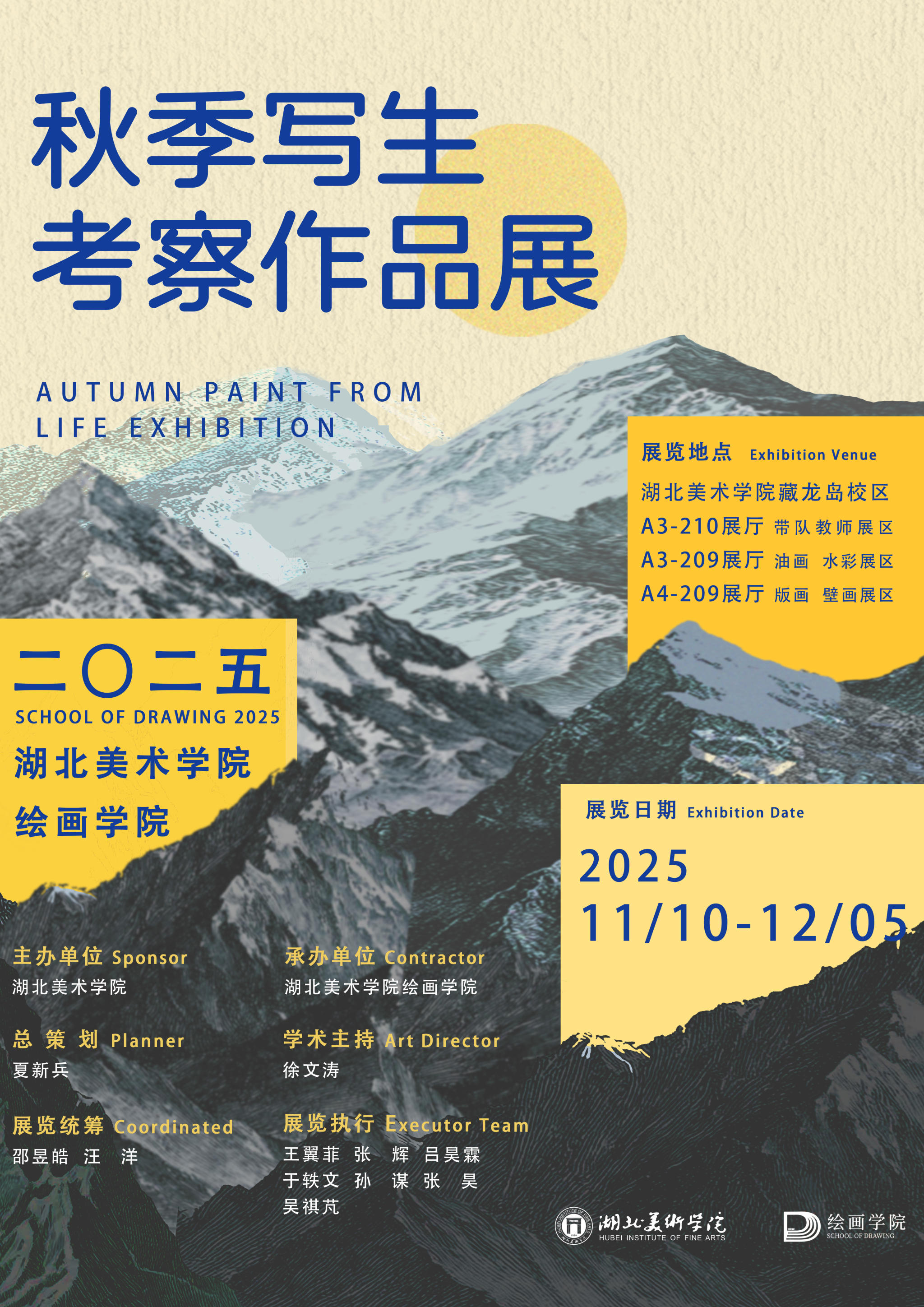 2025年11月10日,betway西汉姆联官方网站2025年秋季写生采风展在A3-209、A3-201、A4-208展厅正式拉开帷幕。本次展览集中了betway西汉姆联官方网站近500余幅(组),其中包含教师20余幅(组)。展览海报2025年10月13日-2025年11月2日,依据公司文件要求,betway西汉姆联官方网站组织2023级、2024级员工共298人分赴湖北恩施、安徽宏村、云南大理、山西大同等地成功开展为期21天的艺术实践课程。在艺术实践课程的各带队教师悉心指导下,betway西汉姆联官方网站学子们深受启发,不断记录自身...