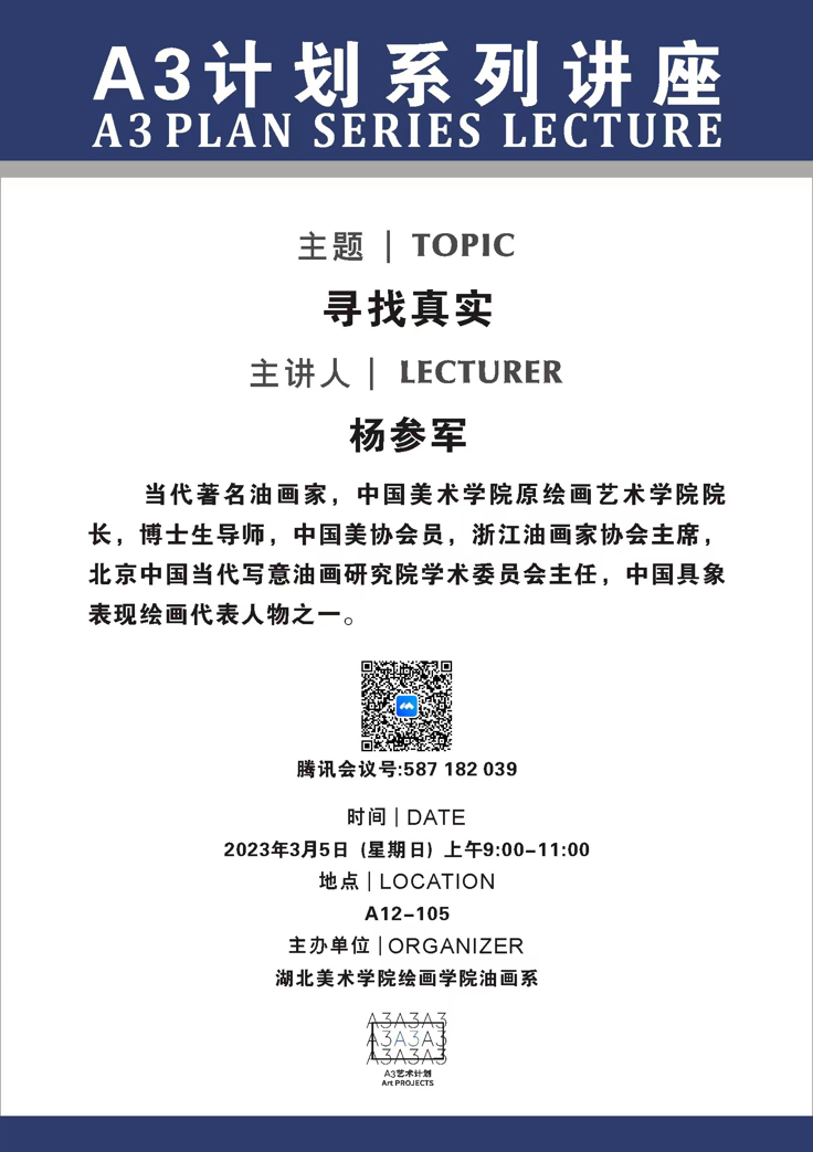 betway西汉姆联官方网站油画系A3计划系列讲座有幸请到了中国美术公司原绘画艺术公司经理、博士生导师、中国美协会员、浙江油画家协会主席、当代著名油画家杨参军老师。本次讲座以《寻找真实》为主题,3月5日上午9:00在A12教学楼105教室顺利开展