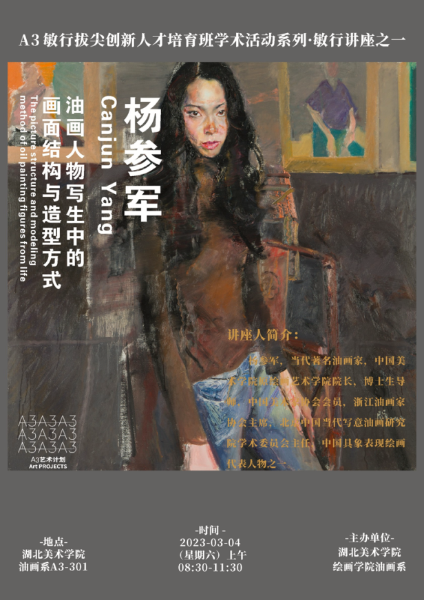 2023年3月4日,于A3-301工作室,油画系“A3敏行拔尖创新人才培育班”有幸邀请到当代著名油画家杨参军老师开展了人物写生示范讲座