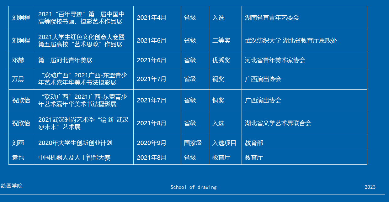 4.研究成果转化:教研项目转化为优质课程展览;乡村艺术类研究项目获得省级创新创业计划项目