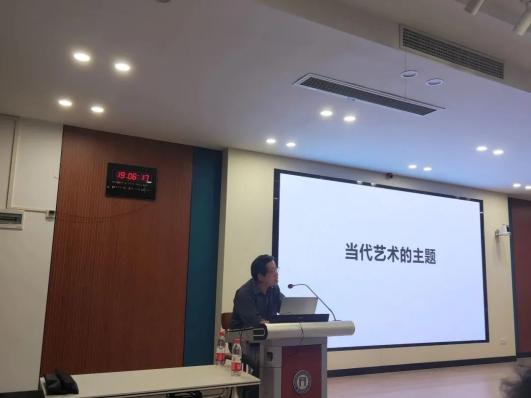 徐文涛经理首先简要介绍了本期讲座的主讲人易英教授并指明本期主题为分享有关当代艺术相关知识,开拓湖美学子视野。