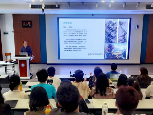 此次讲座涵盖自复杂性理论、形态发生理论、参数化设计的深入发展之下当代建筑设计新特征等重要内容,讲述非线性设计思维与方法等话题,从线性到非线性、设计创作逻辑、参数化作品三个方面进行讲述。讲座伊始,宋靖华教授从建筑设计的历史背景出发,讲述建筑设计正以一种由设计师主导的、自上而下的传统设计方式向当今以计算机辅助设计、以数理逻辑为核心的自下而上的设计方式转变,强调了数字化对当今生活的改变,引发了大家强烈的兴趣。随即,宋靖华教授以理论概念为先导,为大家讲述线性空间与非线性空间的概念与特征。之后,又通过相关的项目改造策略、员工设计作品等具体案例的特点进行深入分析,对相关作品中的线性与非线性特征进行解读,使大家对所讲的专业概念更加清晰,打开大家的思路。