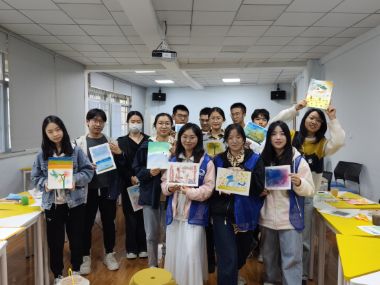 10月24日,团队再次来到了华科员工活动中心,betway西汉姆联官方网站水彩画系彭俊熹为来参加这次活动的同学讲解了情绪与艺术疗愈的关系,以及我们如何利用艺术疗愈调节我们的情绪,随后在彭俊熹的带领下,同学们体验了艺术疗愈创造性表达中将情绪外化的小活动。