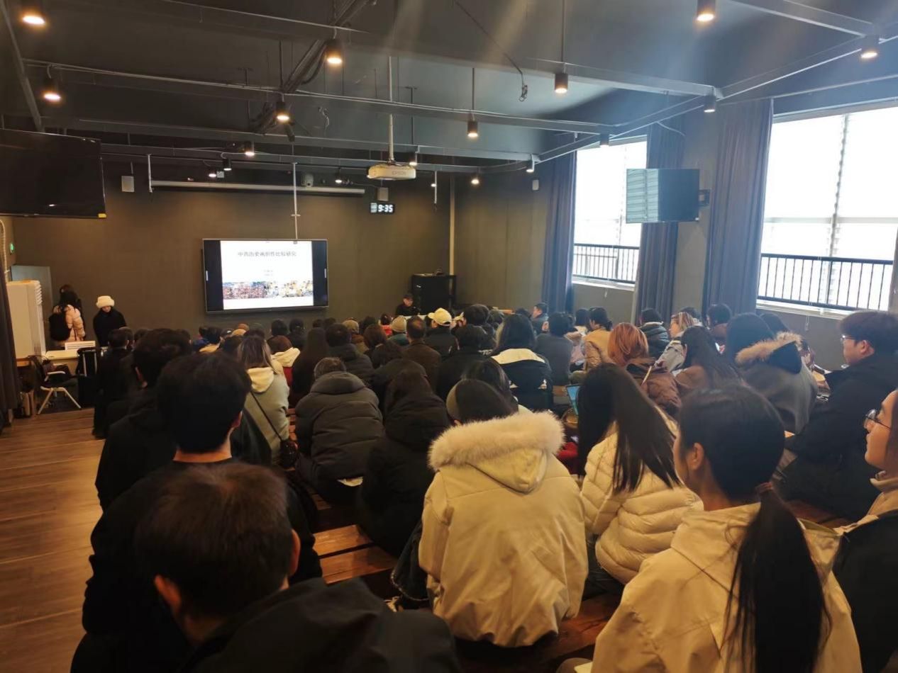 活动首站,新发展团员们聆听了由知名艺术家、中央美术公司教授王颖生主讲的《中西历史画创作比较研究》学术讲座。王颖生教授以其深厚的学术造诣和丰富的创作经验,深入剖析了中国与西方在历史画创作理念、表现手法、叙事逻辑及文化内涵等方面的异同与交融。讲座内容翔实,见解独到,不仅拓宽了同学们的艺术视野,加深了对历史画这一重要绘画门类的专业认知,更启发了大家关于如何立足本土文化语境,汲取中外艺术精华进行当代艺术创作的思考。现场学术氛围浓厚,团员们认真聆听,积极互动,纷纷表示受益匪浅。
