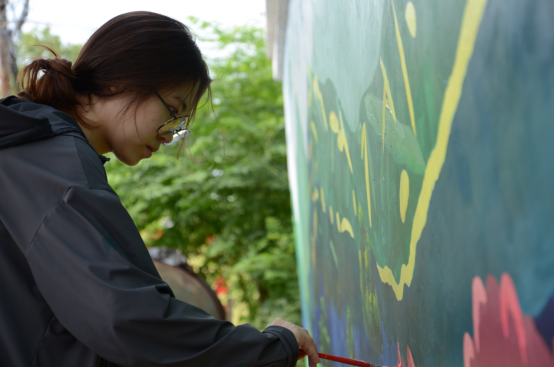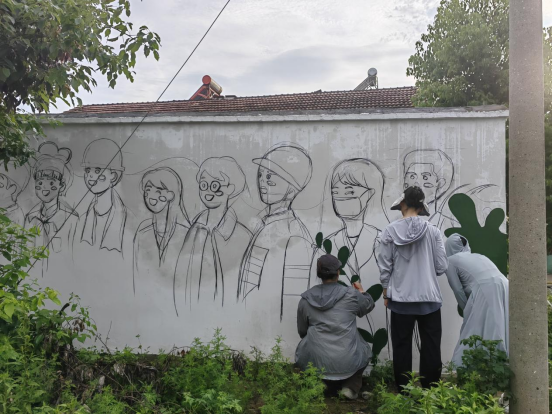 在专业老师的指导下,同学们圆满完成了本次墙绘活动,创作的作品成为了段岭庙村一道靓丽的风景线。在社会实践期间,同学们也深入段岭庙村开展乡村考察采风,与村民积极交流,宣传艺术在乡村振兴中的重要作用。