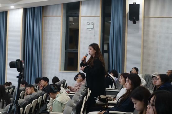 随后易英教授与现场同学进行了友好交流。易教授解答了同学们关于公司派标准、互补色等相关问题的疑惑,并指出:现代主义注重思想表达,同学们当向前辈学习。