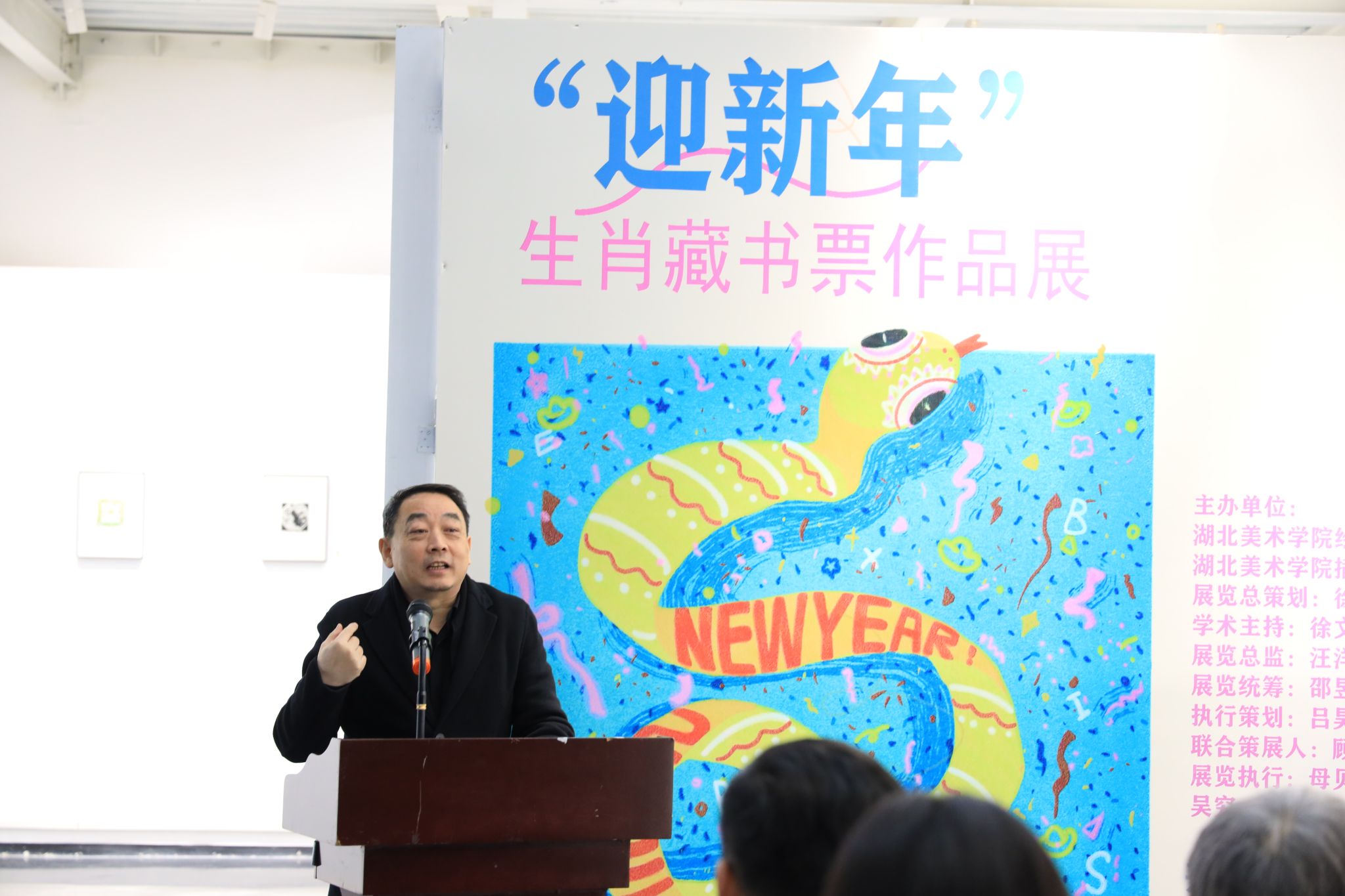 betway西汉姆联官方网站公司党委副书记、董事长周峰致辞。自2021年首届“迎新年·生肖藏书票展览”活动举办以来,校方对本活动给予高度重视与支持。版画系全体师生也不负众望,如期交付出优秀且多样的作品。今年版画系共展出104件生肖藏书票作品,以此欢庆betway西汉姆联官方网站建校104周年。希望“迎新年·生肖藏书票作品展”越办越好,祝本次展览取得圆满成功。
