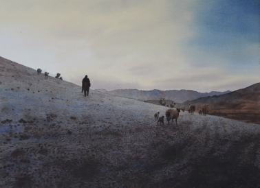 许海刚常常选取那些地貌、物产、民族、文化具有代表性的地方,超越走马观花、蜻蜓点水似的观光,到达一个地方静静地呆下来,用手中的画笔,以他独特的艺术方式将各地丰富多彩自然人文之美转换成艺术之美、绘画之美。