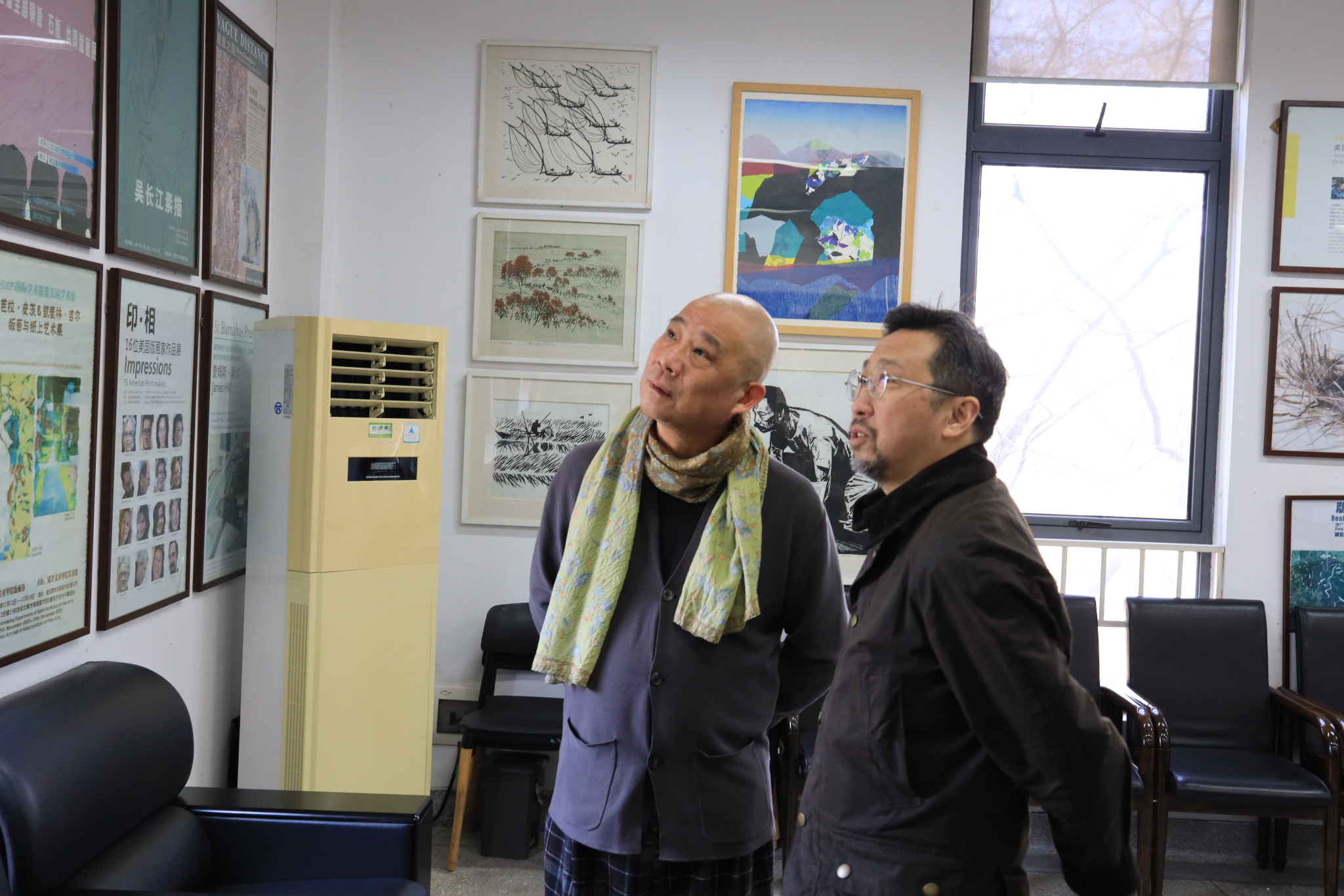 张炼向方力钧介绍版画系老照片