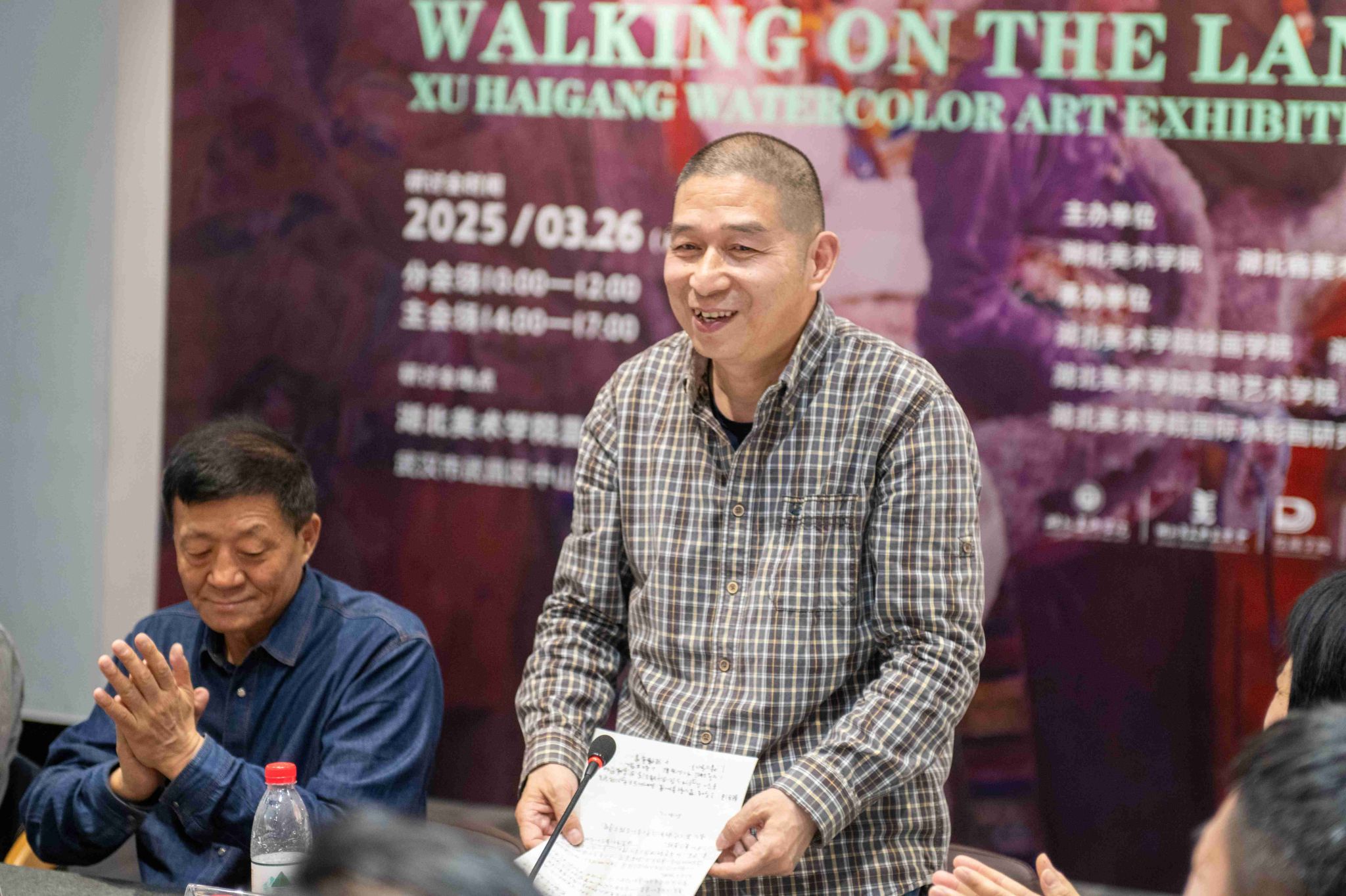 许海刚向所有出席研讨会的嘉宾、学者和朋友表示诚挚感谢,特别感谢策展团队与工作人员的辛勤付出。他认为艺术的价值在于对话与传承,希望通过交流激发灵感,共同推动水彩画艺术的发展。许海刚表示将继续努力创作,与各位携手共进,在艺术的道路上走得更稳更远,为观众带来更多优秀的作品。