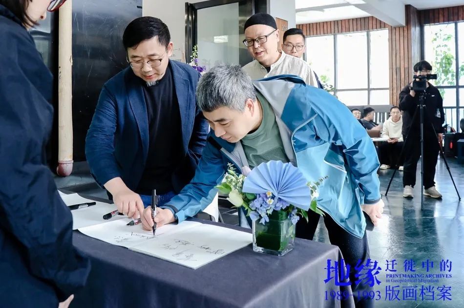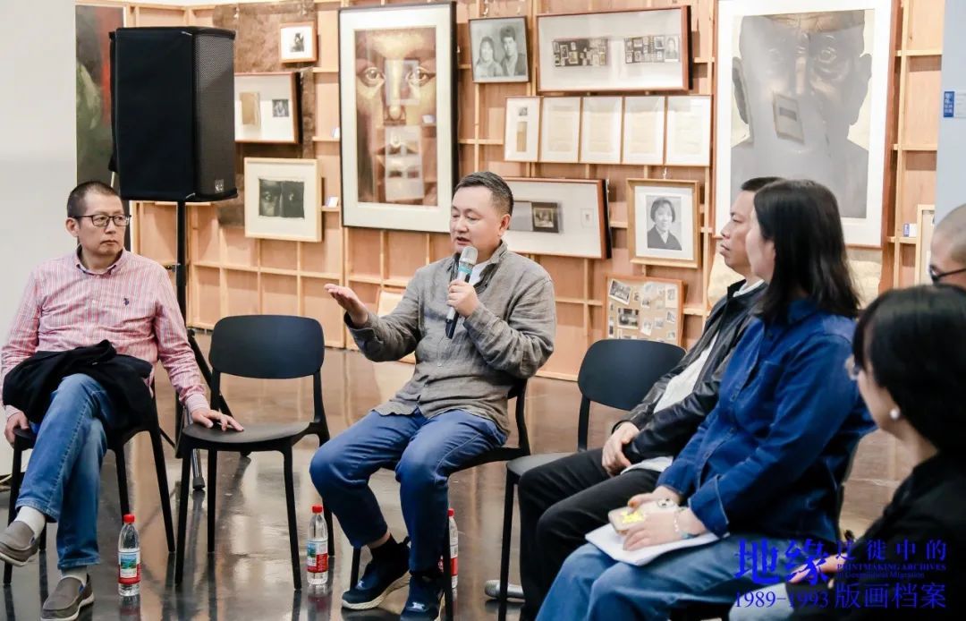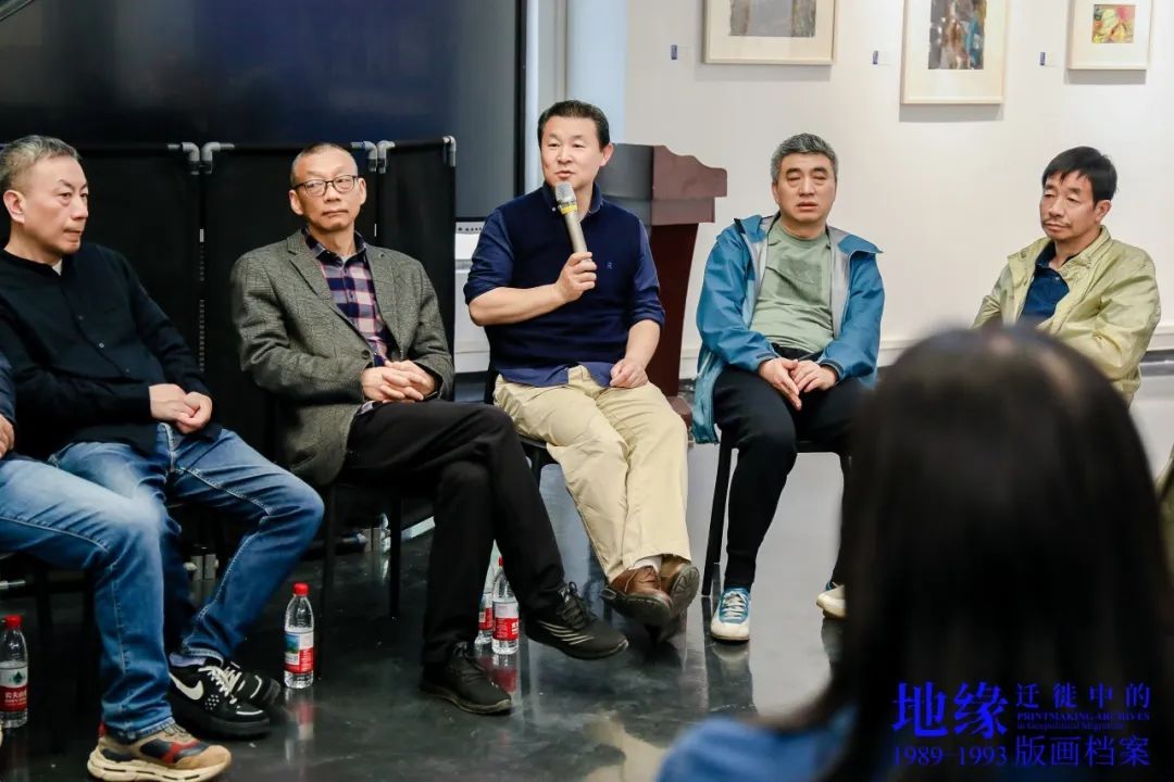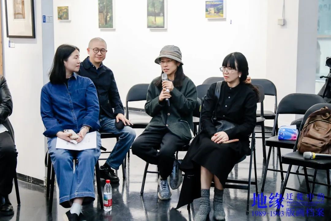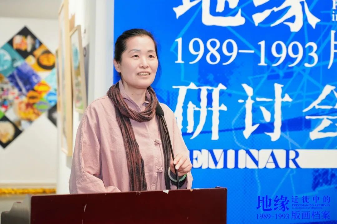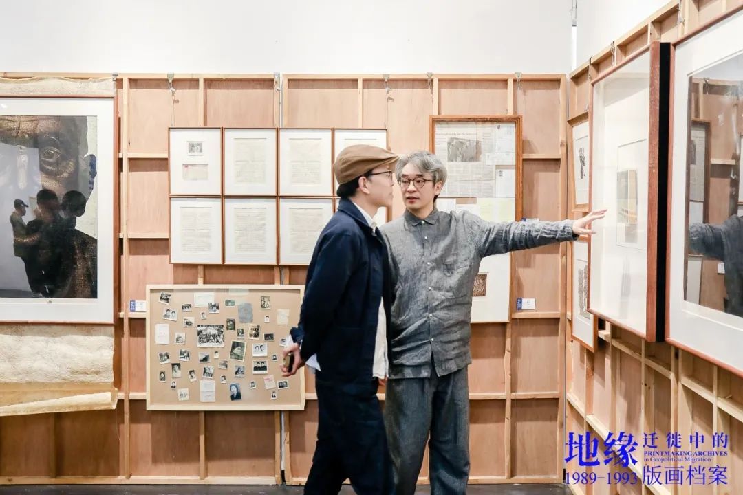 樊晖教授在致辞中谈到:回母校版画系做我们自己的展览意义特别,本次展览是2018年因一位学兄离世,我提议并发起,历经7年,去年又和一位学友告别,我们今天将展览在版画系艺术空间呈现,与现实生活悲喜交融一样,展览是地缘迁徙路线中鲜活的生态关系,1989级版画专业全体成员11人,以档案的个人叙事、地缘与迁徙的关联等多元特质,呈现给社会、母校、恩师和学弟们36年艺术生涯的姿态,以版画的物性、绘画性的丰富、以及文献边界的转化,继续未来艺术与生活的探索。
