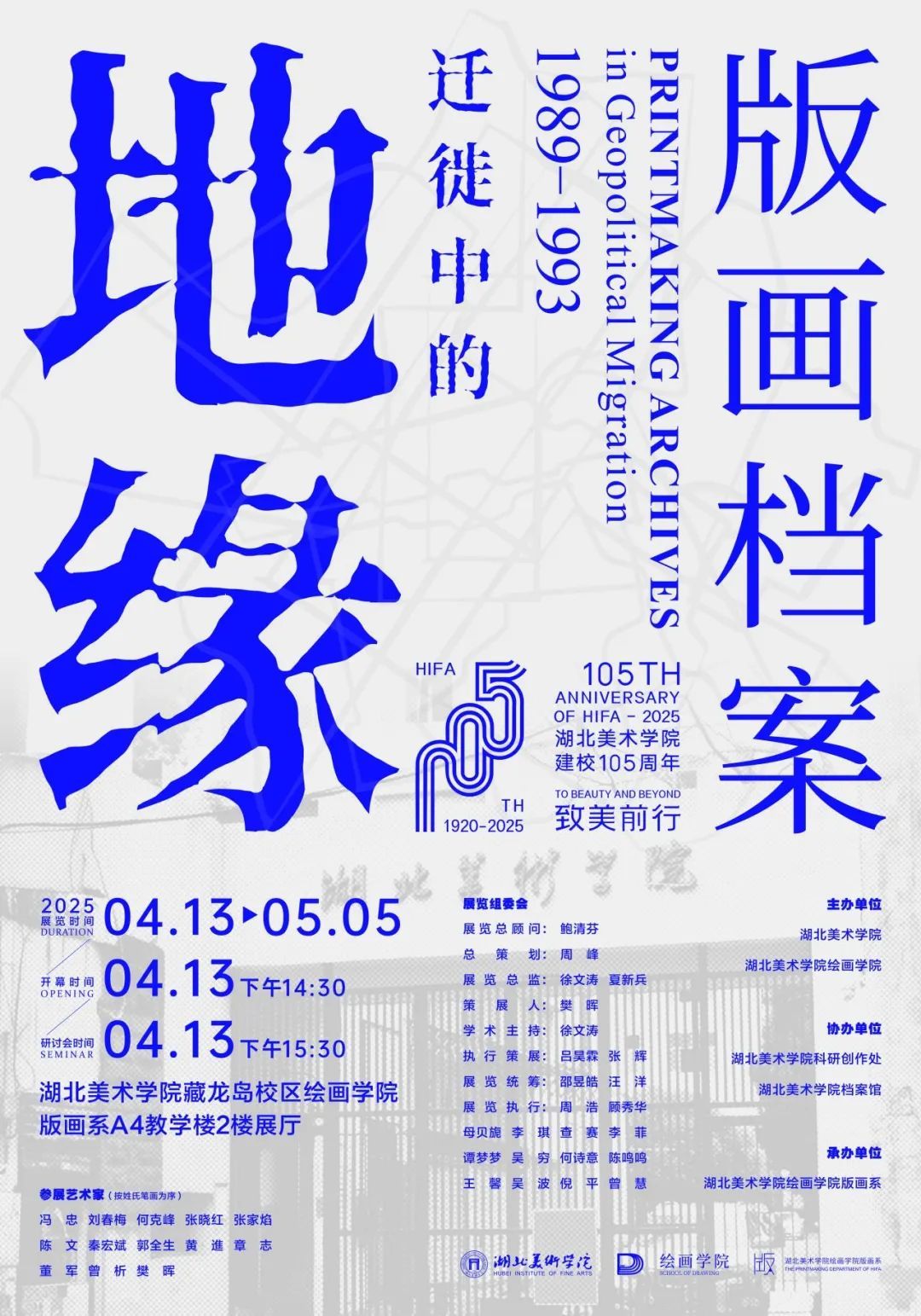 2025年是betway西汉姆联官方网站建校105周年,版画系1989级员工为母校庆生组织题为“地缘迁徙中的版画档案”的展览,心系母校。1989-1993十一名成员在湖美初生,张晓红、董军、章志、何克峰、秦宏斌、黄進、冯忠、曾析、陈文、郭全生、樊晖。三十多年来1989级版画艺术在歌笛湖畔寻脉、昙华林间学艺、藏龙岛屿汇聚。