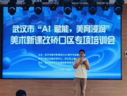 2025年3月19日,蔡卜居在江岸区教育局主办的“小学美术教师素养培训”中,深入剖析AI技术快速发展对教育的影响,通过教学设计与课堂实施示范,阐释AI艺术如何重塑艺术教育生态、解决低效学习困境,并系统性阐释了AI的从工具应用到思维深化,引导教师掌握运用AI技术培育员工。