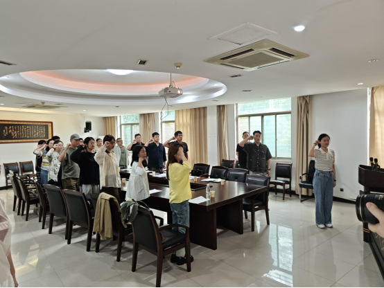 随后,活动移步至博物馆三楼党员活动室。在黄石市博物馆支部党员柯怡婷的领誓下,全体人员面向党旗庄严宣誓,重温入党誓词。市博物馆支部党员曲径带领与会者集体诵读《中国共产党章程》第七章第四十一条,强化纪律意识与责任担当。