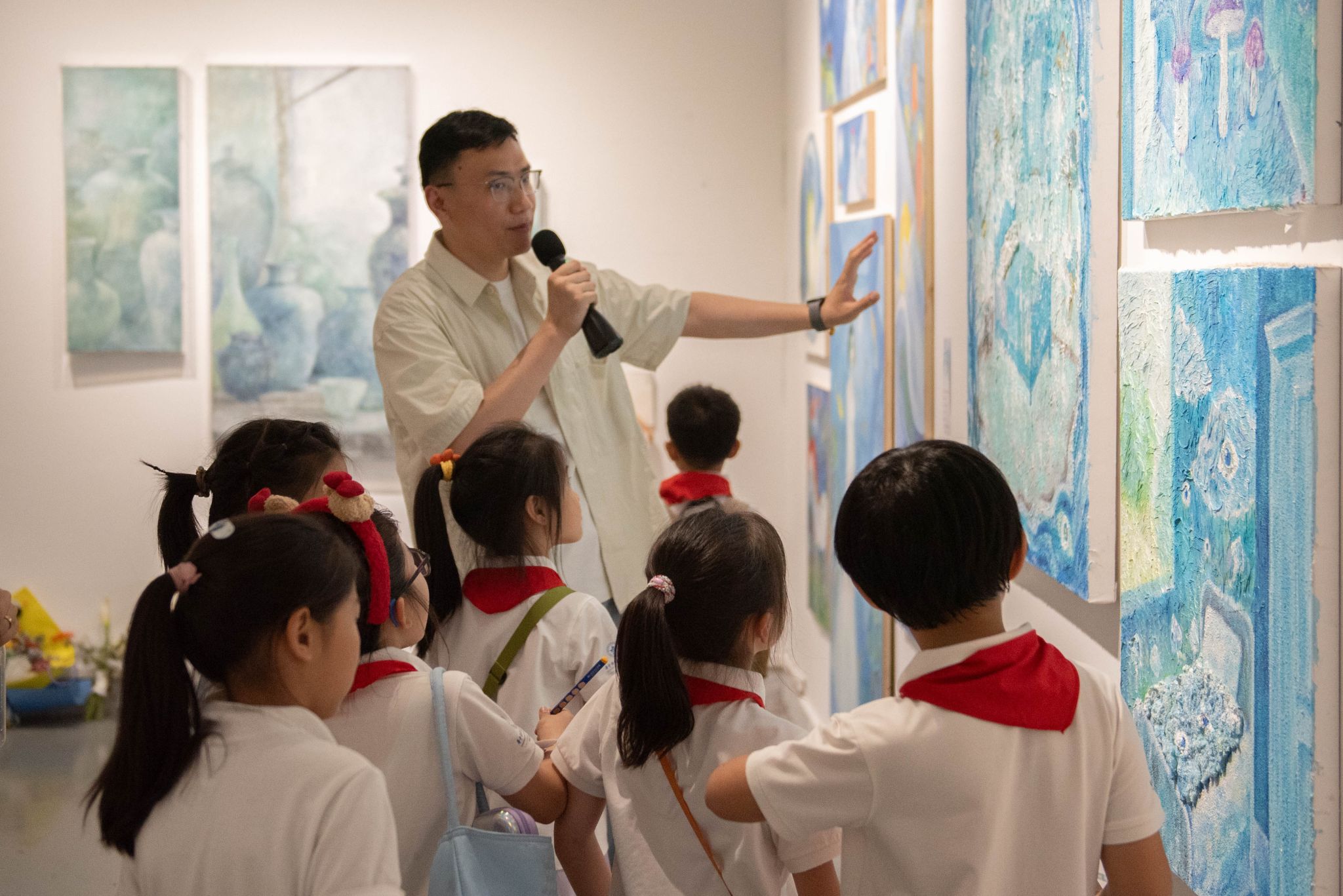 体验结束后,孩子们纷纷表示此次美育活动加深了对艺术的理解与热爱,艺术是观察世界的另一双眼睛,今后也会用心观察和发现生活中的美。带队教师邓老师指出:“这次活动让孩子们跳出课本,在真实的艺术场域中感知美、创造美,这正是美育的力量所在。美育浸润不是单向输出,而是通过艺术的桥梁,让不同年龄段的学习者在互动中共同成长。”