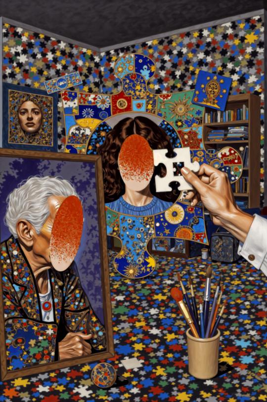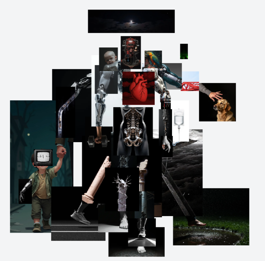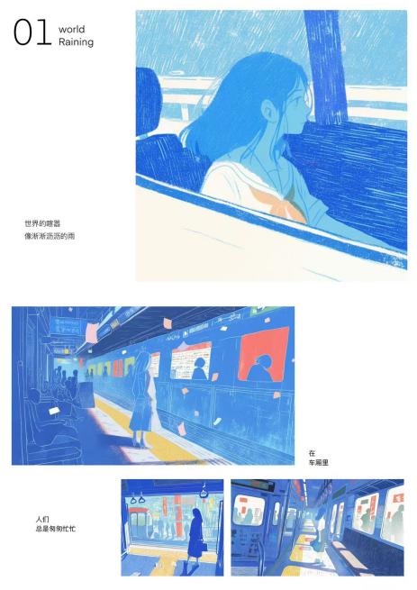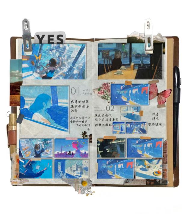 在结课作品的呈现上,同学们各展其能,充分展现了AI绘画的多元可能性。有的同学借助AI辅助进行架上艺术创作,巧妙地将传统绘画技法与AI技术相结合,在画布上勾勒出独特的艺术景观;有的同学利用AI生成的素材进行拼贴创作,通过精心的构思与布局,构建出富有创意的视觉拼图;有的同学运用AI进行绘本创作,借助其高效生成图像的能力,打造出一个个生动有趣的绘本故事;还有的同学将AI与Blender等其他设计工具结合,进行其他形式的艺术创作,探索出更多新颖的艺术表达方式。