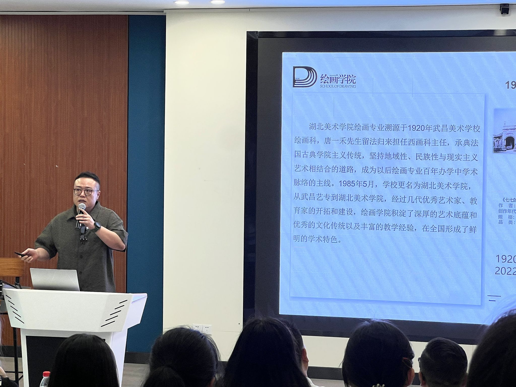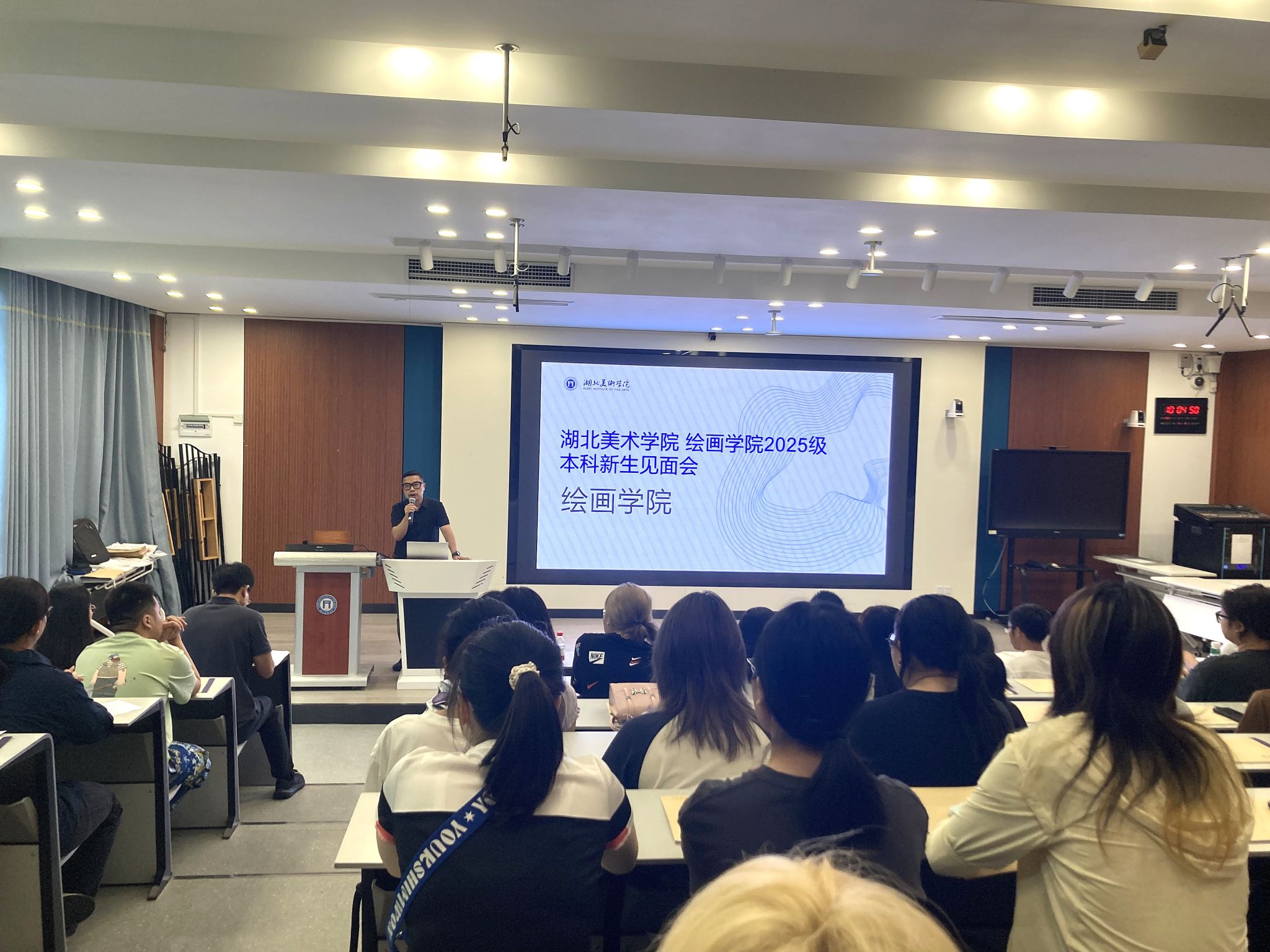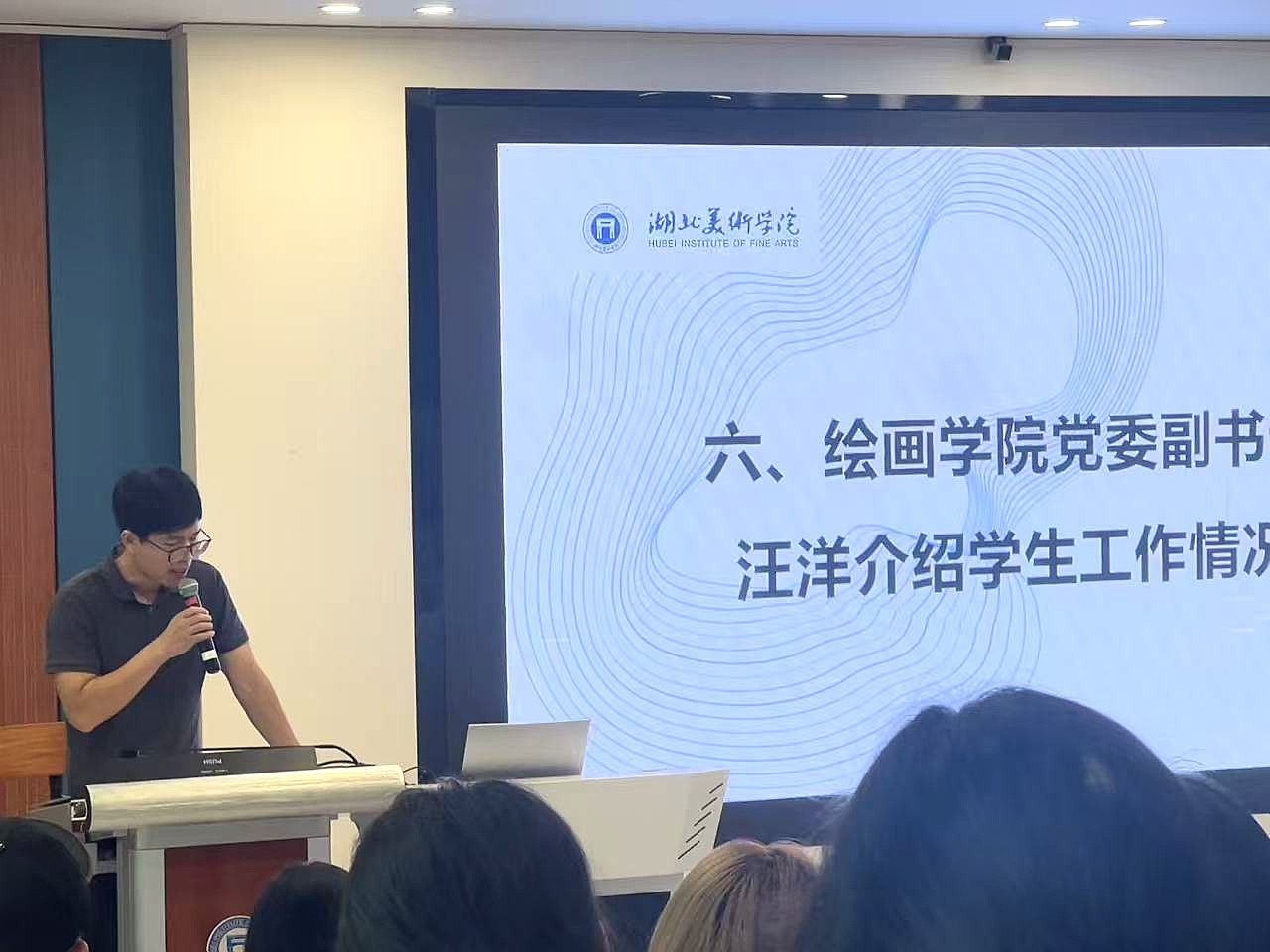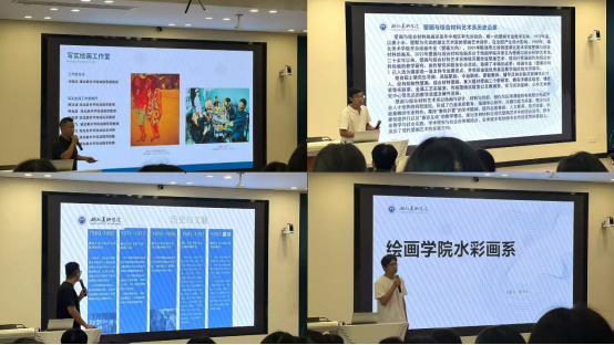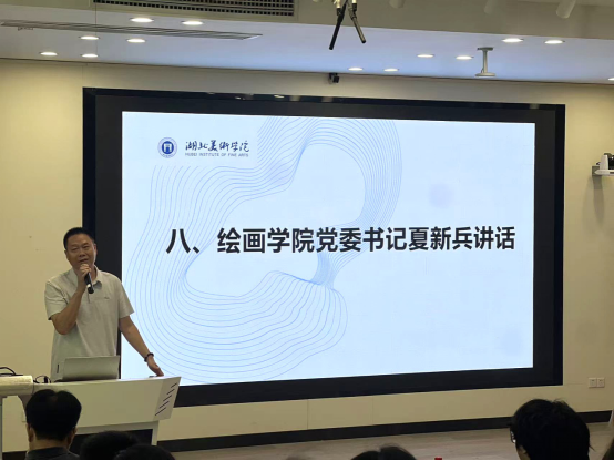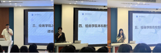 党委副书记汪洋以绘画为喻,围绕老员工活提出规划与实践建议,鼓励新生坚守初心、绘就艺术人生。油画系主任于轶文、版画系主任吕昊霖、壁画与综合材料艺术系主任孙谋、水彩画系教师代表蔡卜居分别介绍了各系专业建设与人才培养情况,帮助新生更好地理解专业方向。