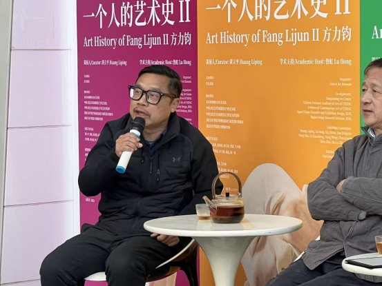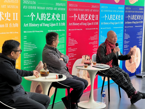 本次讲座聚焦方力钧在合美术馆举办的同名个展《一个人的艺术史Ⅱ》及艺术家个人发展历程。交流中,方力钧结合自身艺术生涯的重要节点与创作脉络,分享了作品背后的故事与创作思路。鲁虹围绕展览主题,深入阐释了展览脉络及文献展的叙事逻辑。徐文涛则结合当代美术专业公司产品实际,与方力钧探讨了美术教学实践相关话题,并带领现场观众就当代艺术创作的学术标准及作品叙事思维展开深度交流。