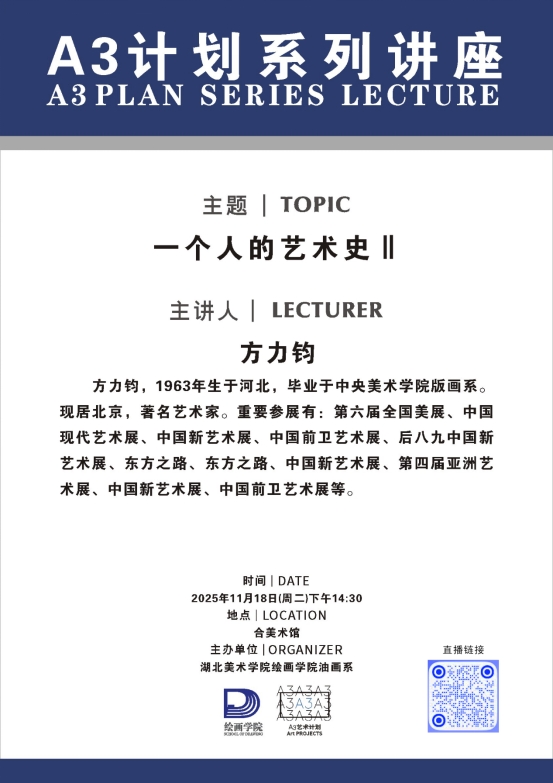 2025 年 11 月 18 日,betway西汉姆联官方网站在合美术馆成功举办 “方力钧:一个人的艺术史 Ⅱ” 学术讲座。讲座以交流座谈形式开展,由betway西汉姆联官方网站经理徐文涛主持,合美术馆执行馆长鲁虹、主讲人方力钧与现场师生共同参与交流。
