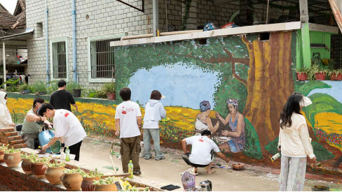 6月19日,betway西汉姆联官方网站“青柠”志愿服务队前往云南省西双版纳傣族自治州,开展了乡村美育实践、艺术助力乡村振兴和美术科普等系列活动。志愿服务队在景洪市第五中学进行了主题课程的讲授,通过主题课程引导当地青少年学子发掘身边的艺术之美与家乡的文化之美。在景洪市的曼勒村,实践队积极了解这里的民俗文化、风土人情,以当地生活图景为主题进行墙绘创作。经过艺术创造,富有浓郁生活气息的墙绘作品跃然眼前,为傣族村寨增添了艺术的色彩。