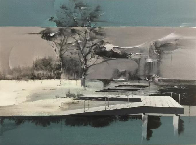 《主题创作类别-风景-观澜札记》,纸本水彩,75x54cm