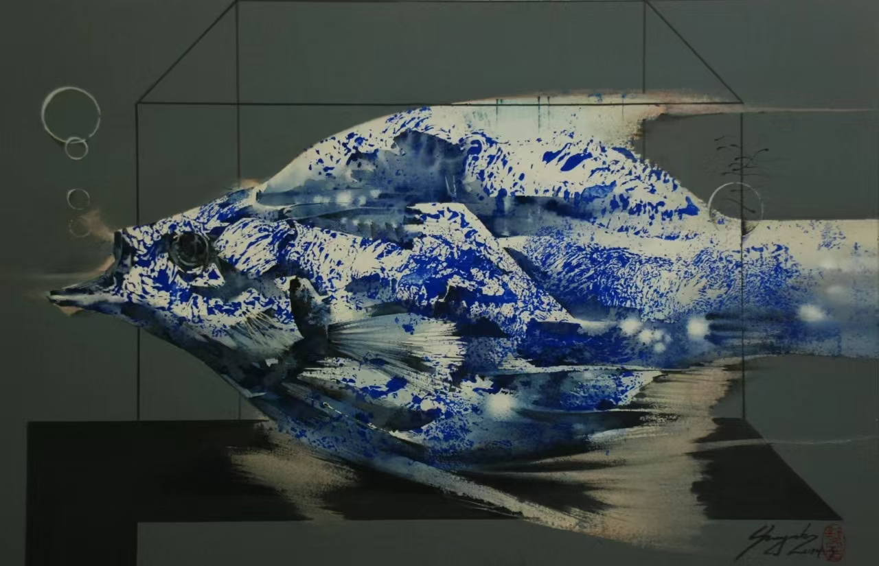 《主题创作类别-青花鱼8》,纸本水彩,53x35cm