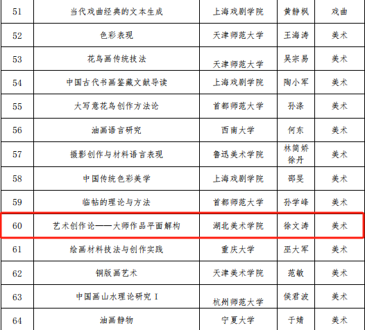 此次评选旨在提升全国艺术硕士专业学位研究生教育的质量与水平,并促进优质教育资源的共享。经过严格评审,徐文涛及其团队的课程凭借创新的教学理念、丰富的内容设计和高效的线上教学方法,脱颖而出,最终被选为示范课程之一。
