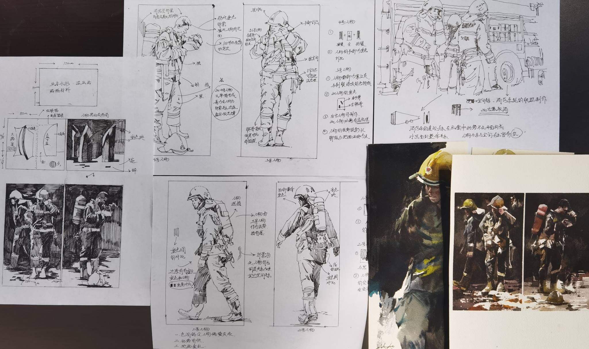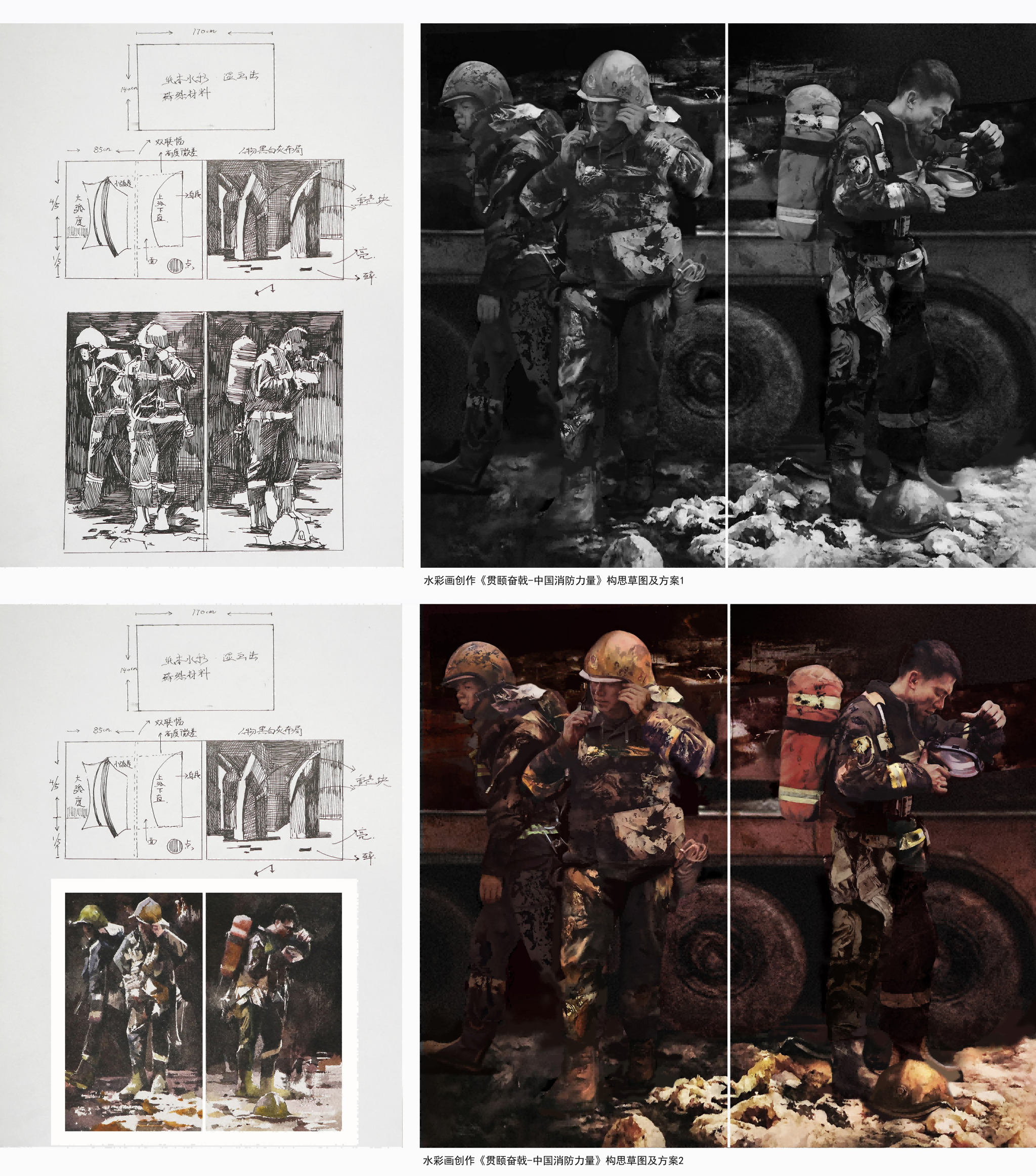 《贯颐奋戟-中国消防力量》水彩画作品是即“第十三届全国美展”进京、“第十五届全军美展”入选、中国人民革命军事博物馆收藏、2020国家艺术基金美术创作项目的水彩画创作《烈火雄心-中国消防力量》后,创作的第二幅此系列作品。
