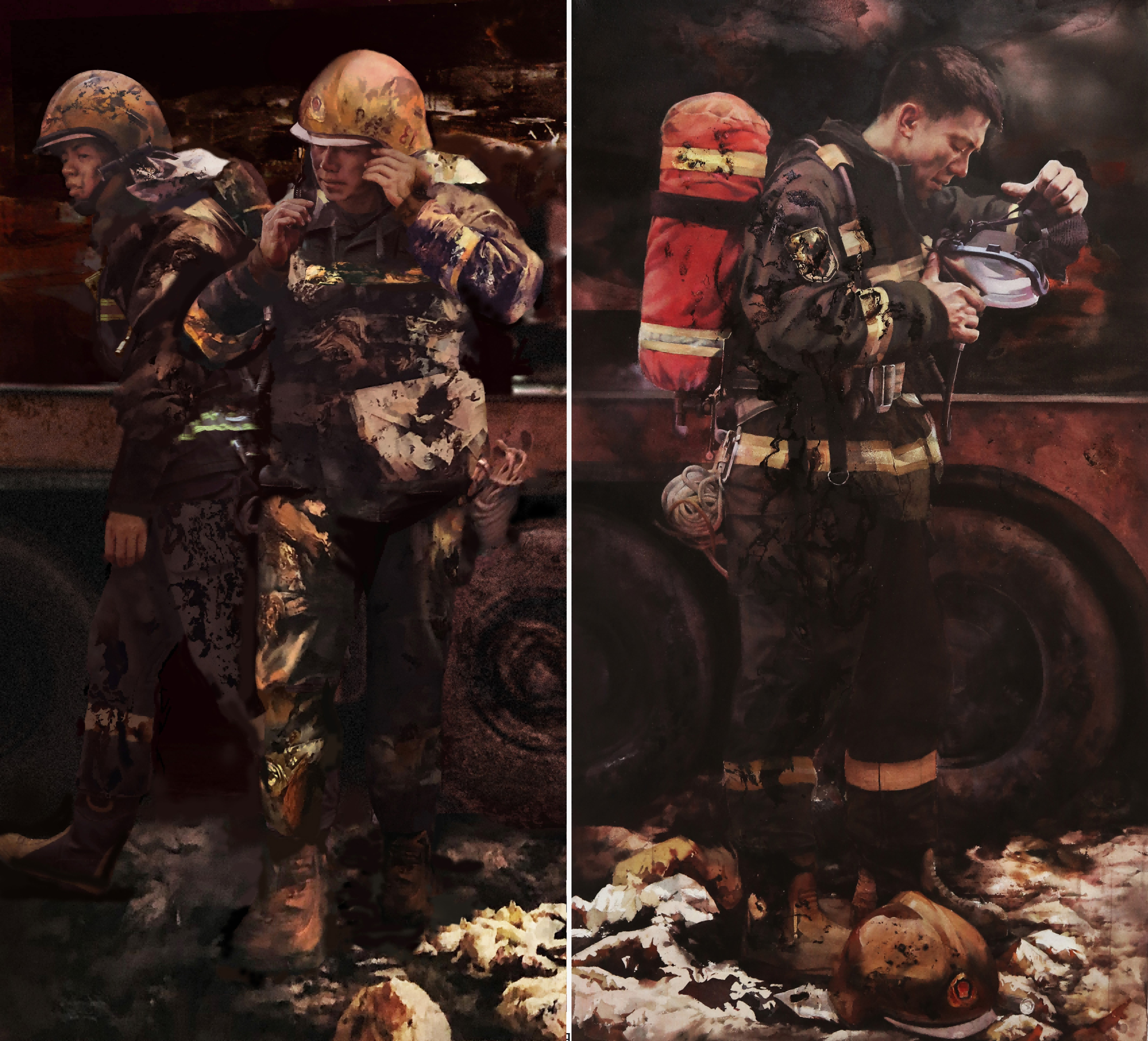 《贯颐奋戟—中国消防力量》170x150cm 纸本水彩