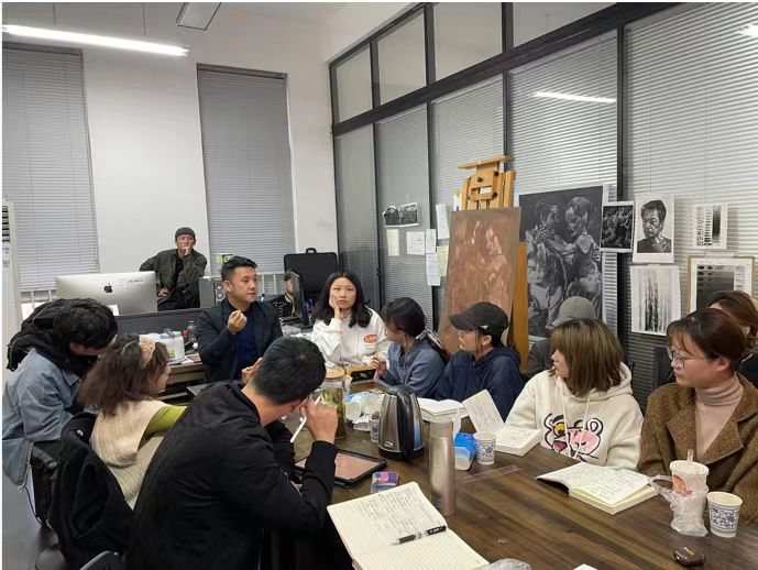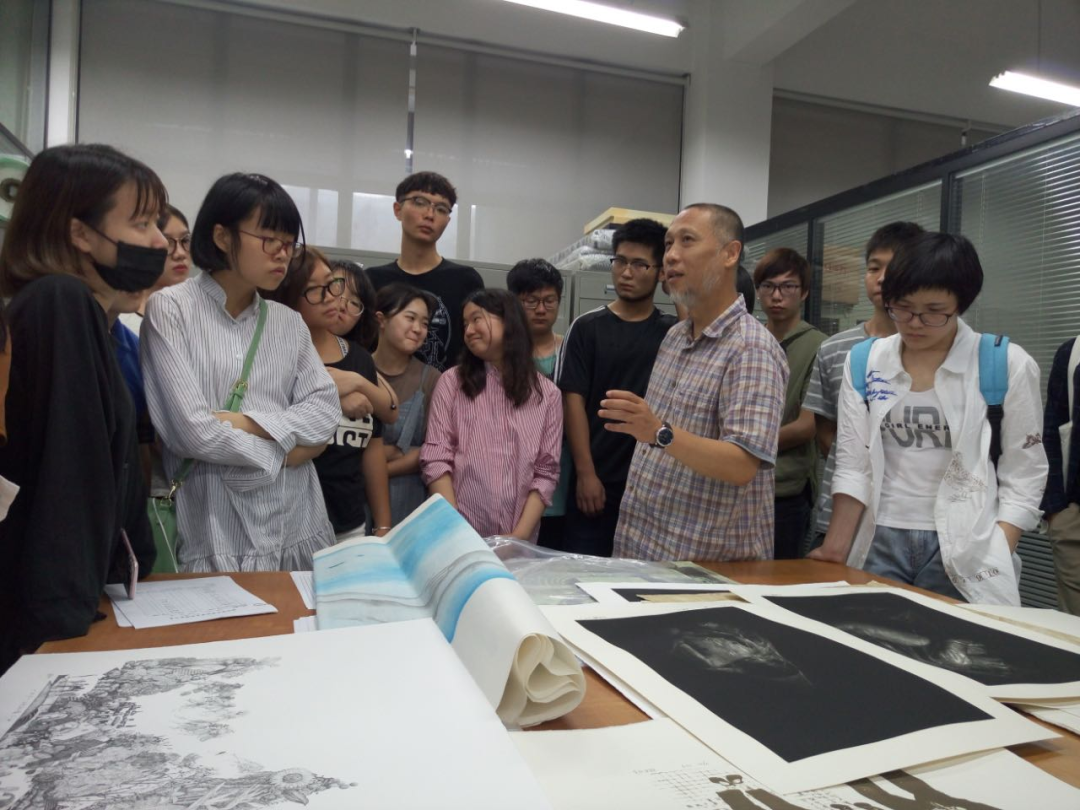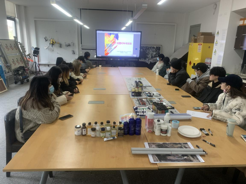 李菲老师与同学们探讨版画与动画影像的融合性运用