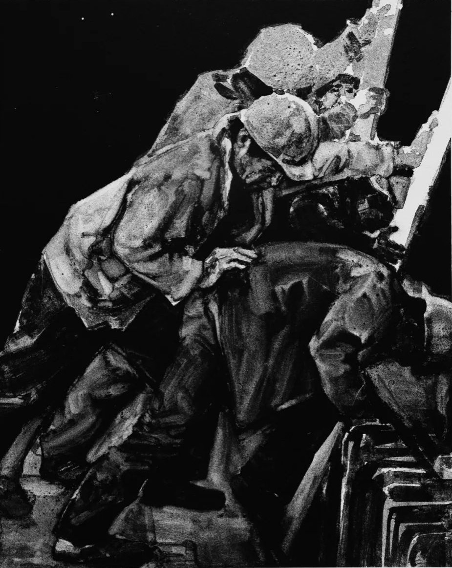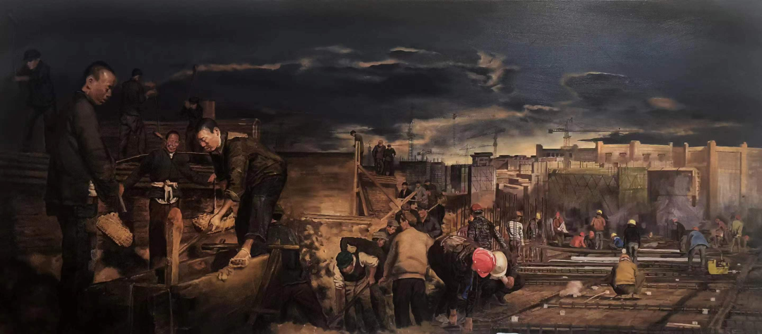 曹丹《阳光下的大桥浇筑工》